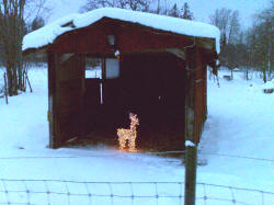 det på väg ner till fåren på morgonen. Renen låg ikull vält inne i fårskjulet.